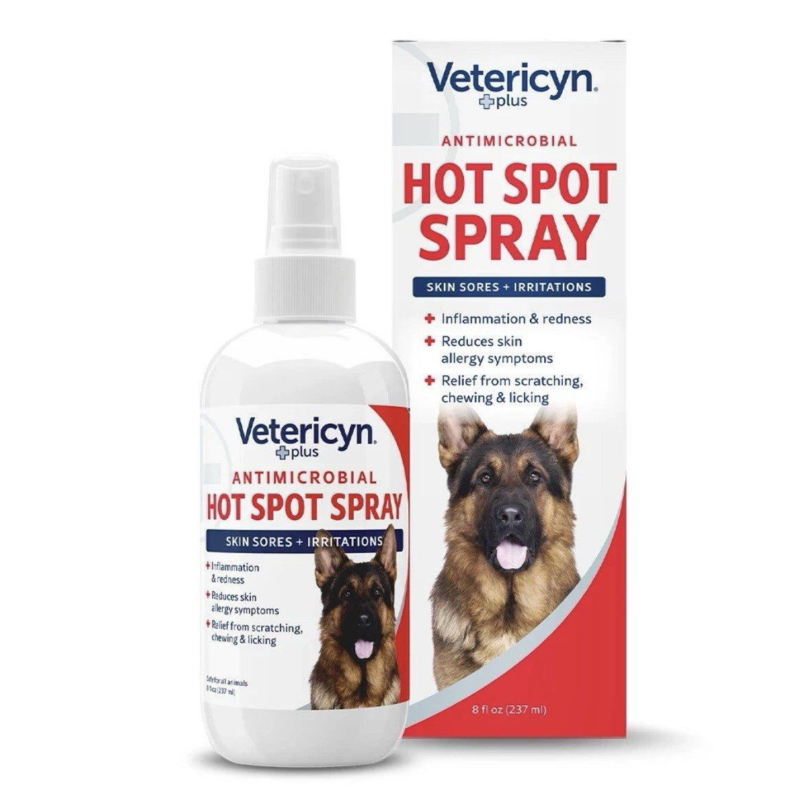Simply put, hot spots form when your pet itches, scratches or licks themselves excessively in the same area, thus preventing it from healing completely. Vetericyn Plus® Hot Spot Spray cleans and provides relief to itchy, irritated skin and sores, helping to minimize the animal's discomfort and reduce their need to lick, bite or scratch the area. It won't sting or burn and is safe to use on sensitive or problematic skin. Use Vetericyn Plus® Hot Spot Spray as topical relief and keep those hot spots in check!